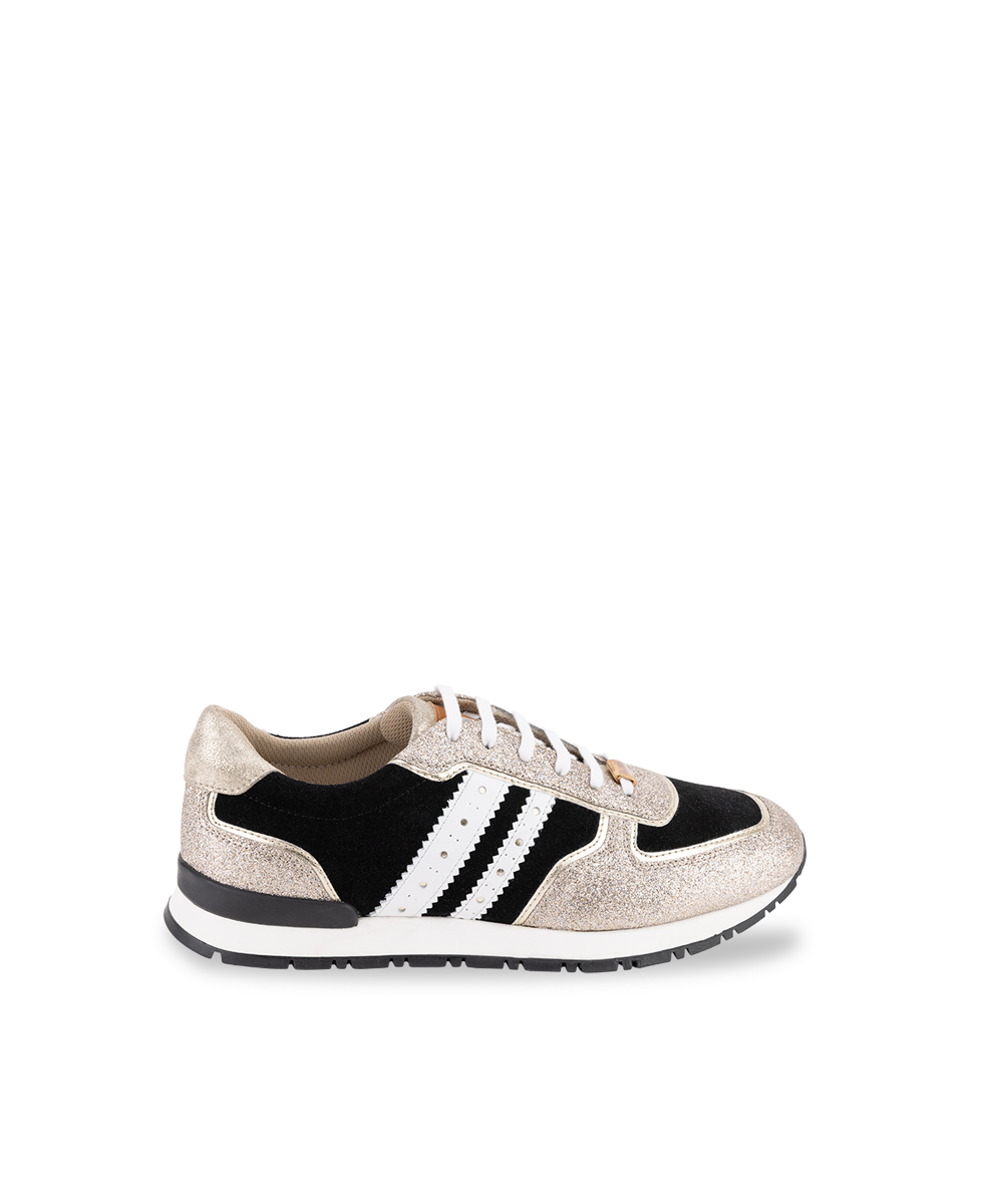 Learn more +Let yourself be tempted by Soonrise sneakers! The perfect compromise between casual and dressy. This pretty pair of leather shoes features stylish white cut-outs and tiny sparkling sequins.
