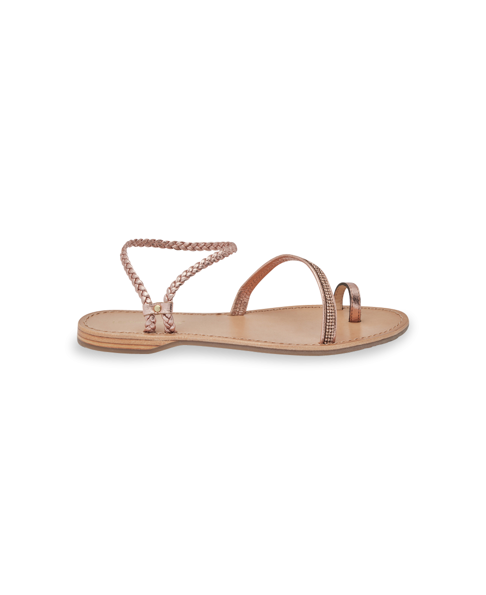 Learn more +The Hellistar flat sandals feature a discreet finger wrap and a minimalist rhinestone-embellished strap, making them a real jewel for your foot. We love the delicately braided ankle strap.