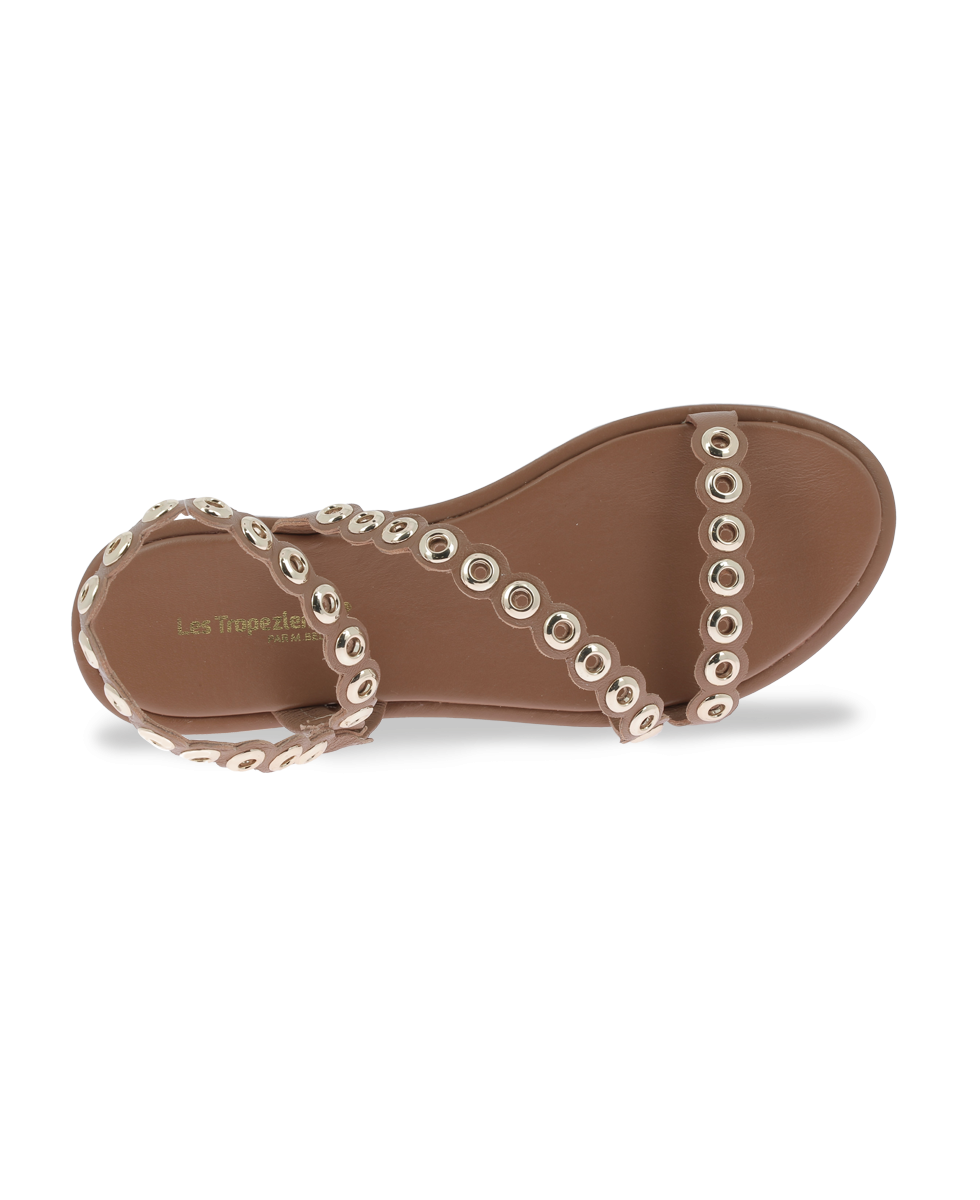 Learn more +Explore the elegance of the Obalina flat sandals. The straps are entirely covered with eyelets, making them a real jewel for your feet.