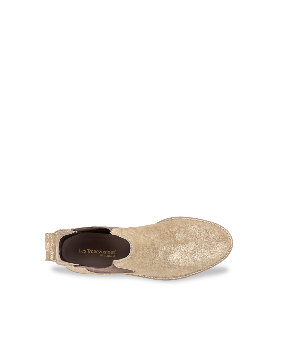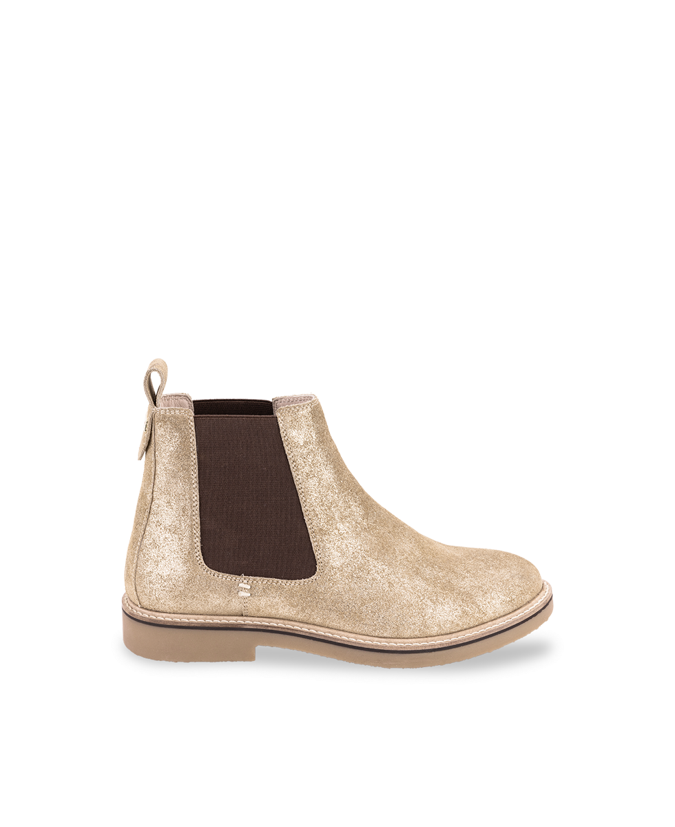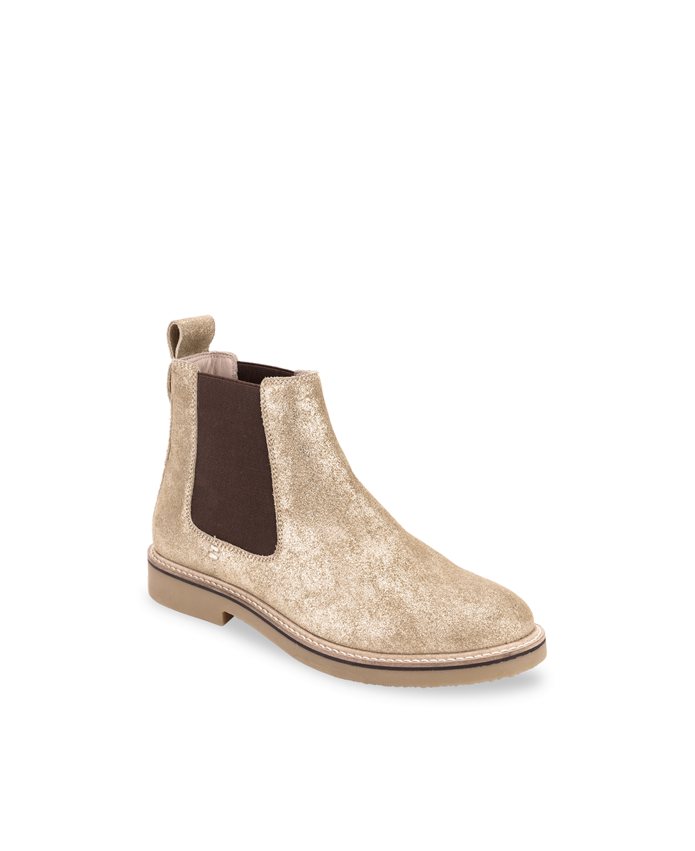Learn more +Who hasn't dreamt of a pair of flat golden ankle boots? VESUVIO is here to make your wish come true! Easy to slip on thanks to its elastic straps, our leather flat ankle boots will add a bright touch to all your outfits.