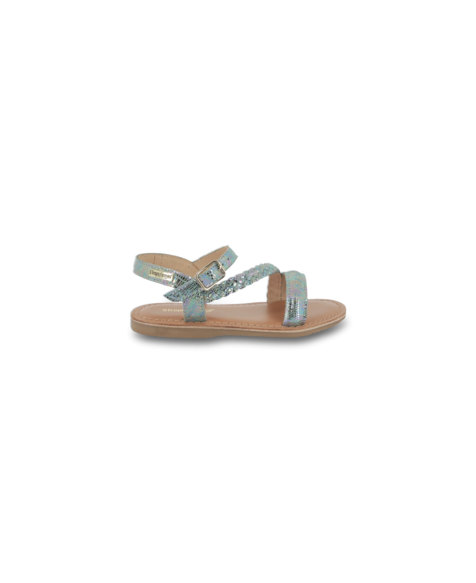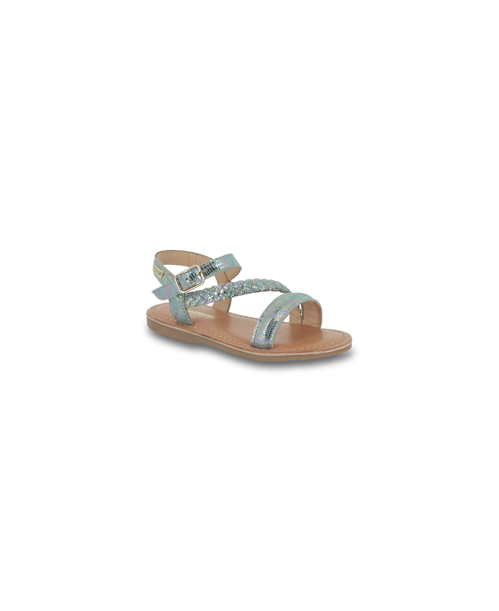 Learn more +All braided and sparkling, the BELUGA children's sandals will have you dreaming! Its Chrome Free lining offers impeccable quality and incomparable comfort. With its silver-beige and hologram-blue colours, you'll love them!