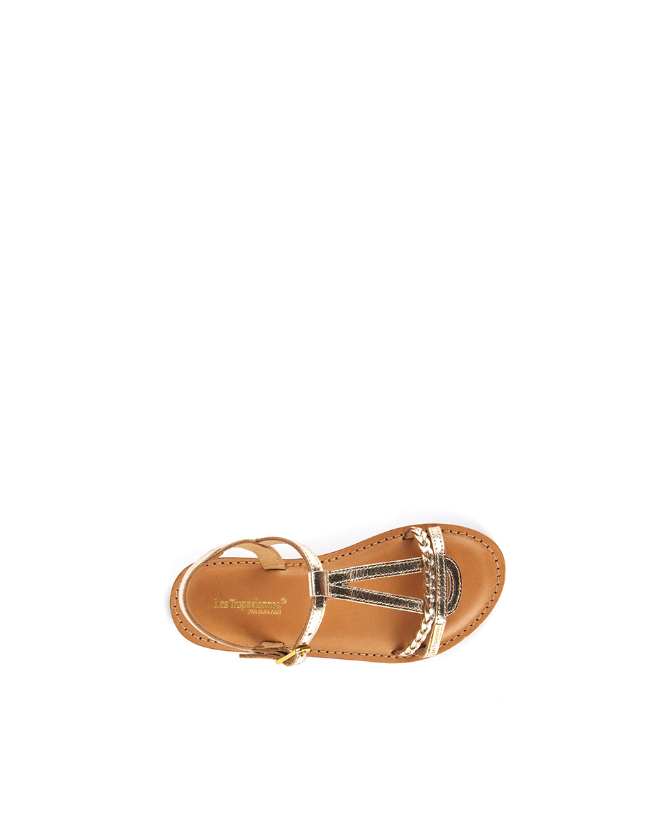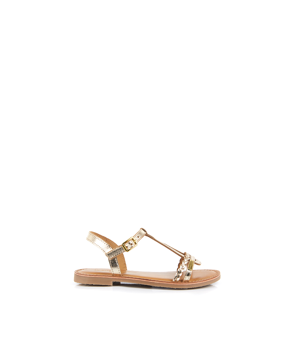 The front strap is delicately braided. Simple side straps dress the ankle.