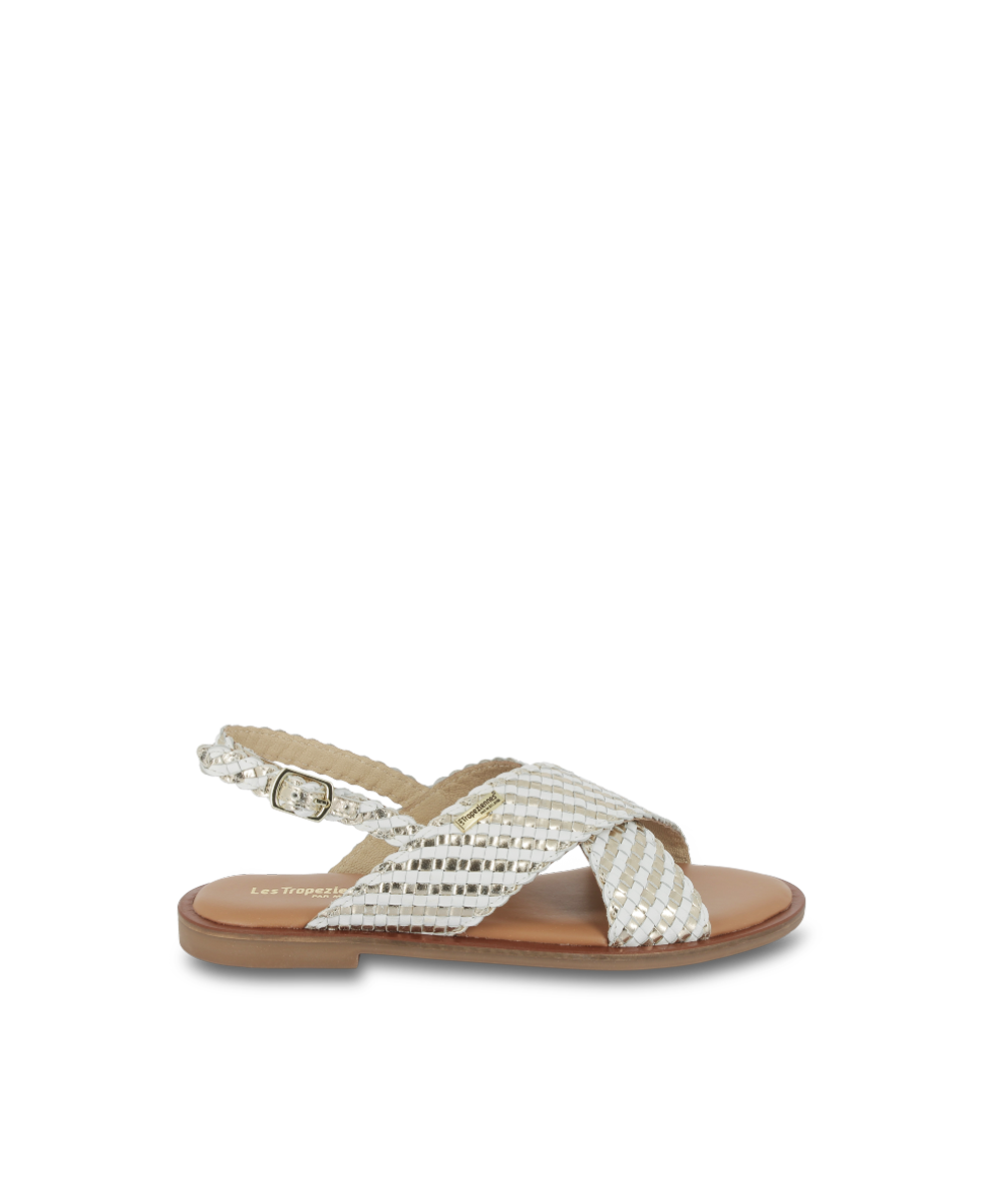 Learn more +Discover our DOA sandal, the epitome of refinement! Available in two colours, gold and white-gold, it features a woven design and a metallic finish. It has an ankle strap with a buckle for a perfect, personalised fit.