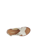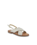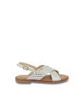 Learn more +Discover our DOA sandal, the epitome of refinement! Available in two colours, gold and white-gold, it features a woven design and a metallic finish. It has an ankle strap with a buckle for a perfect, personalised fit.