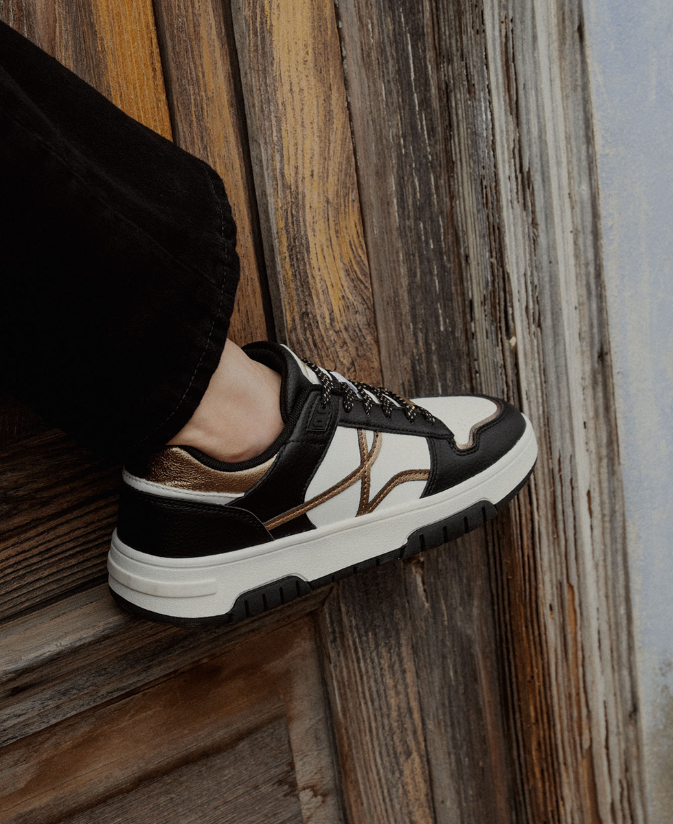 Its thick sole ensures good grip and optimal cushioning, perfect for busy days. The classic lacing system and rear tab make it easy to put on, while the meticulous finishes add an elegant touch to the overall design.