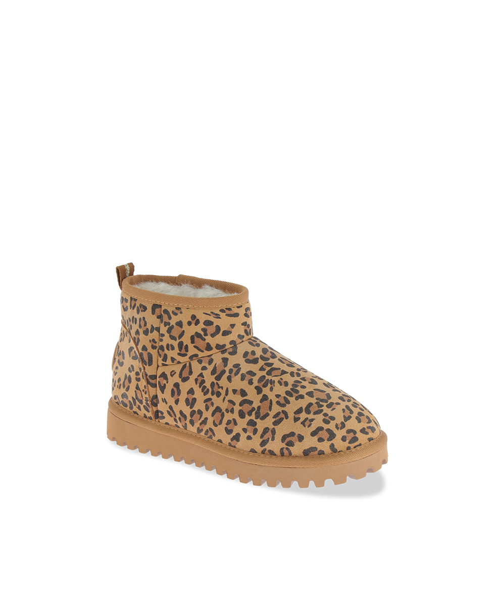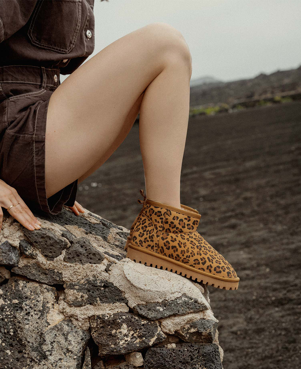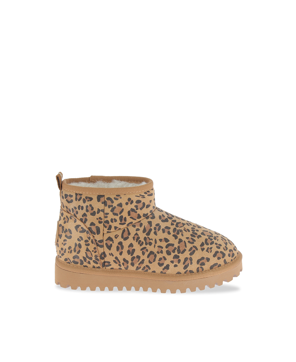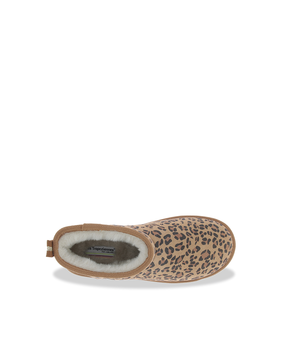 Learn more +Make a statement with these bold yet ultra-comfortable women's boots. Their soft beige leather base is enhanced by a leopard print that adds a wild and trendy touch. The fluffy fabric lining ensures cosy warmth, ideal for chilly days.