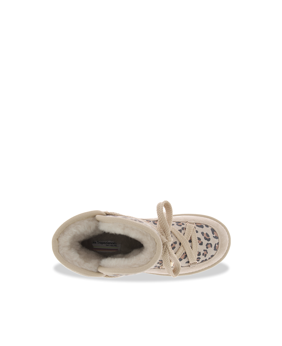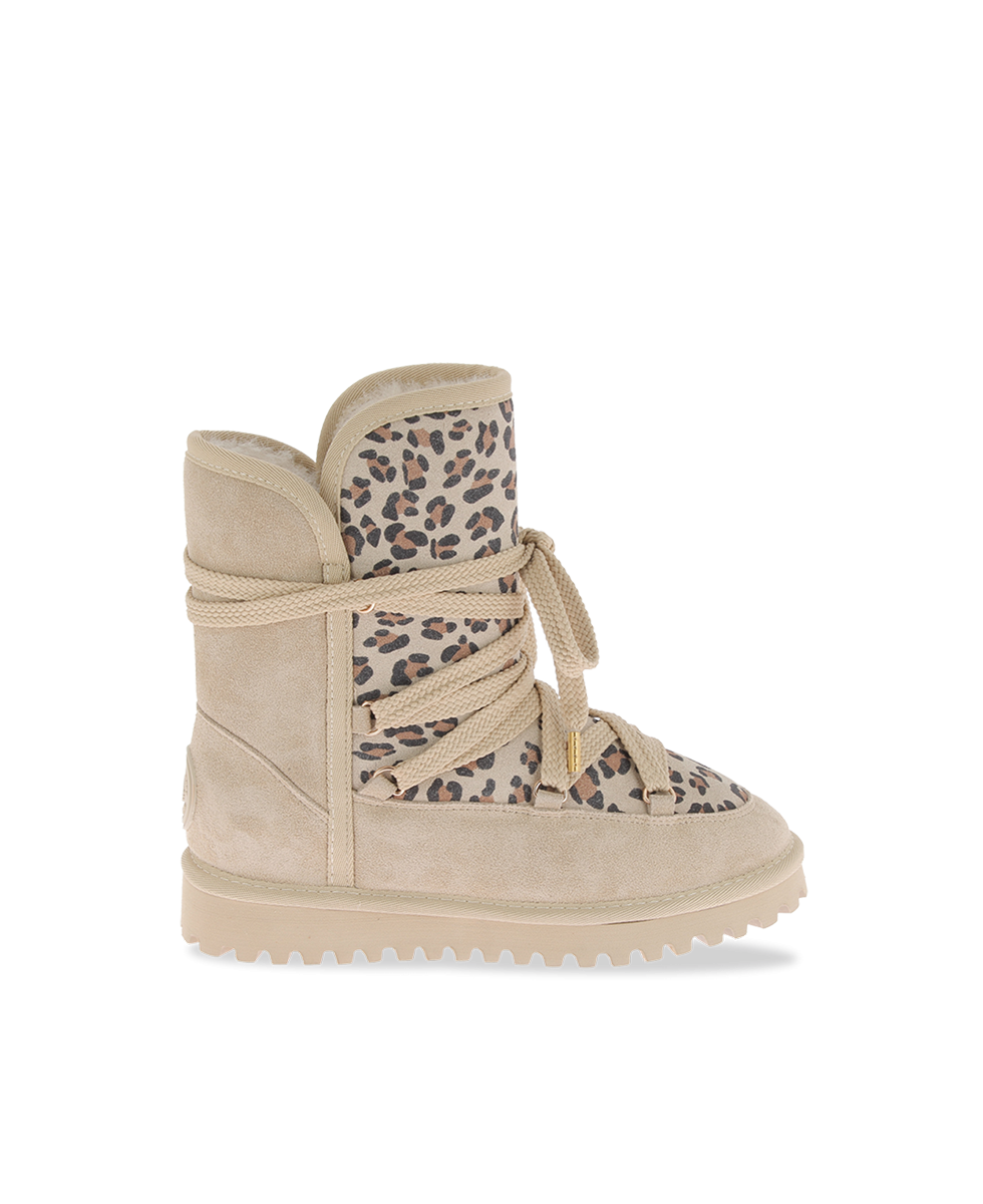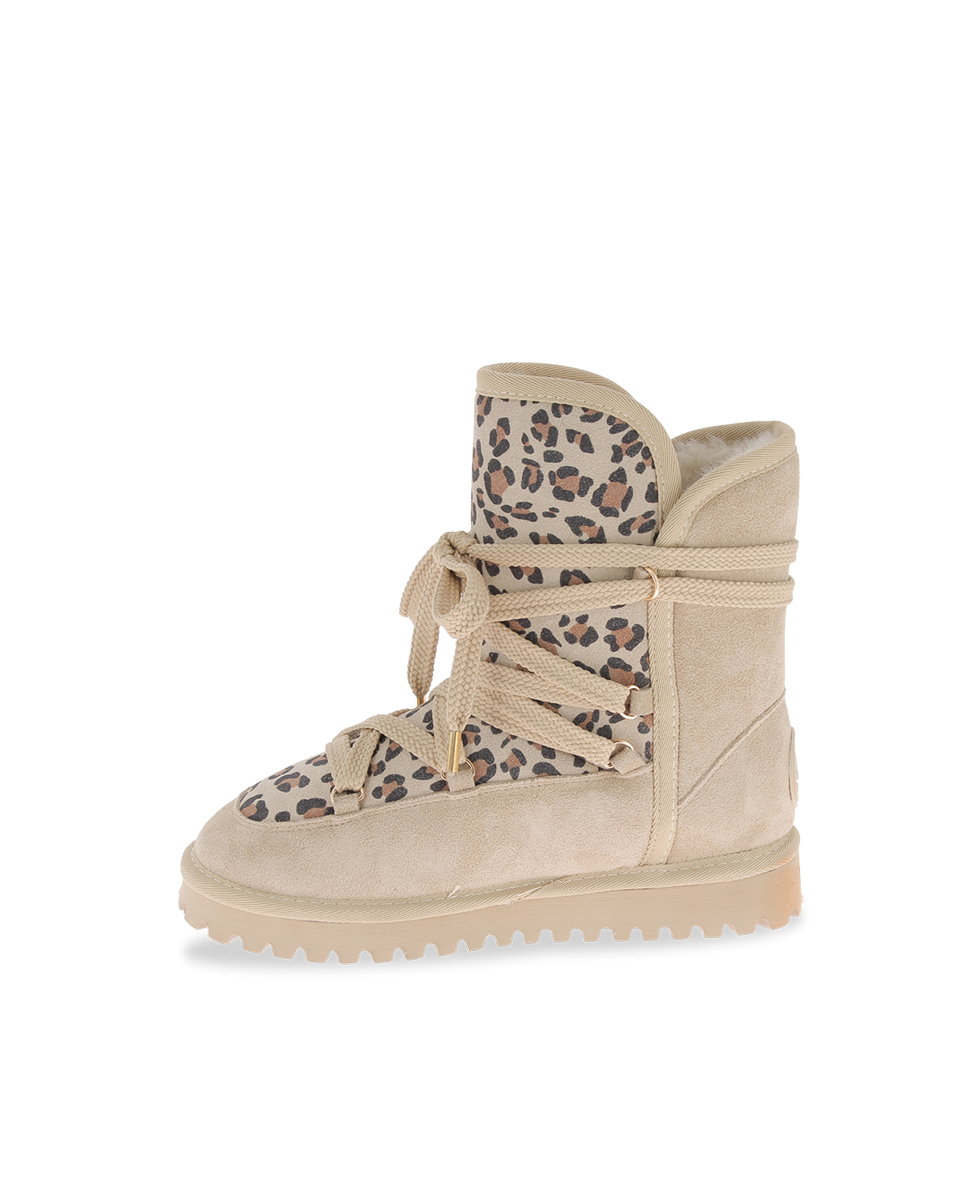 Learn more +Face winter in style with these beige leopard print boots, designed to combine bold style with optimal comfort. Their soft, warm upper is enhanced by an animal print on the upper part, adding a wild and trendy touch to your look.