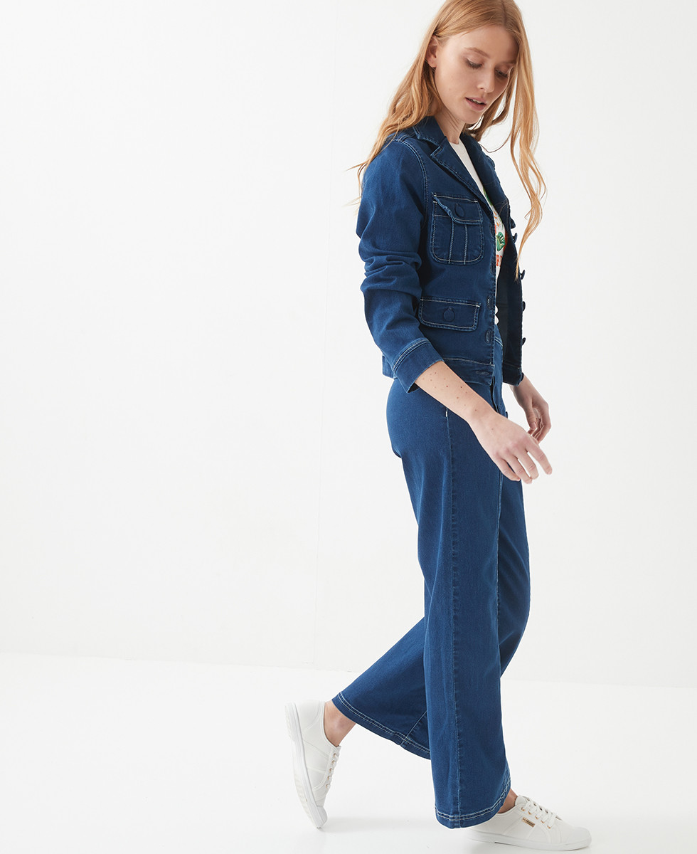 En savoir +Cette veste en jean bleu avec des poches à rabat et à boutons est une tenue décontractée à la mode, parfaite pour un usage au quotidien.