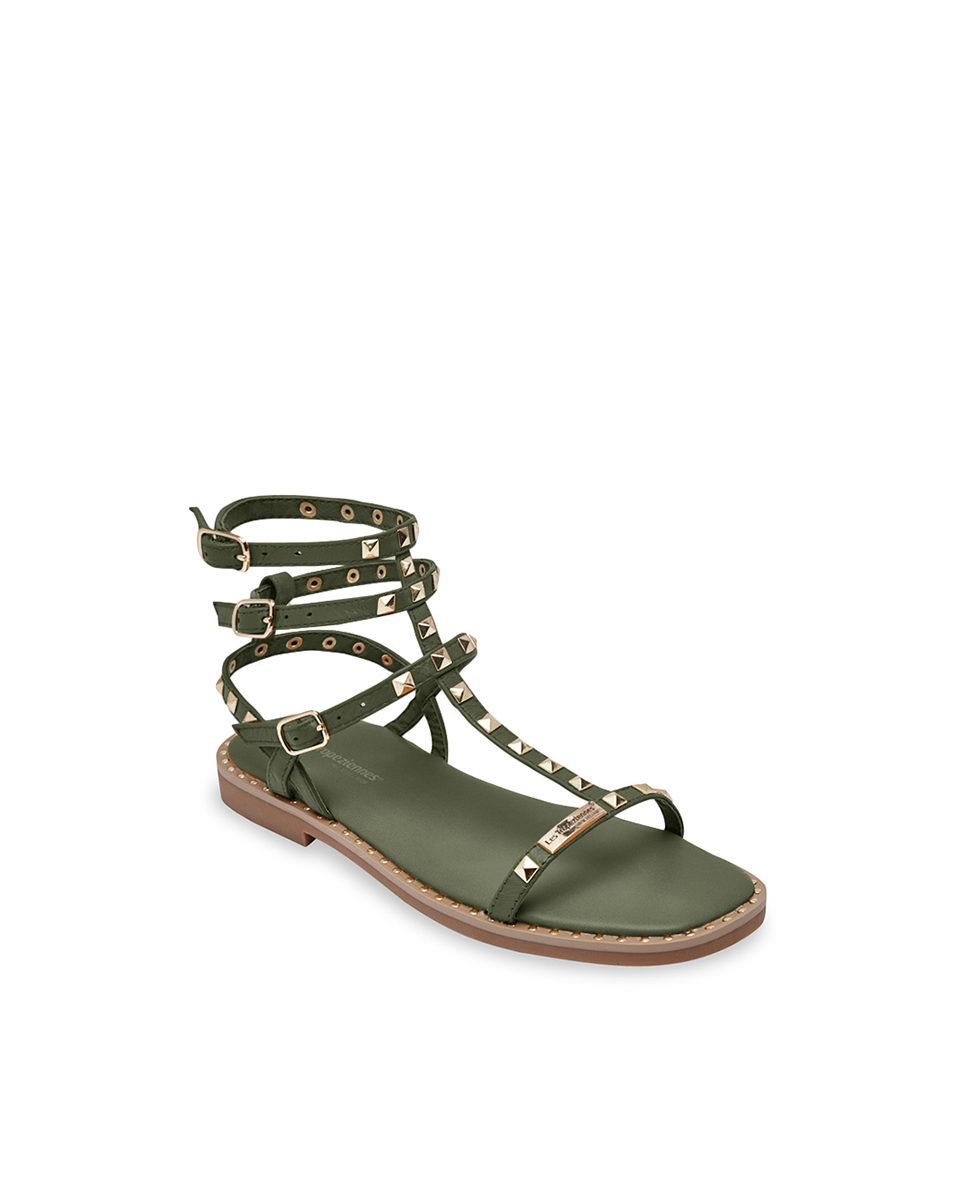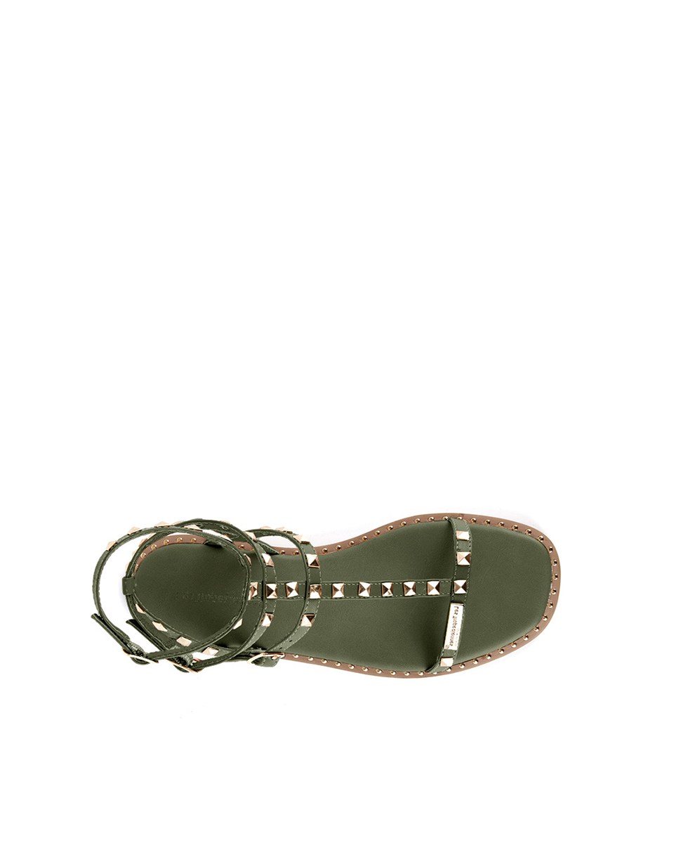 Type de produit : Sandales plates en cuir avec détails métalliques.