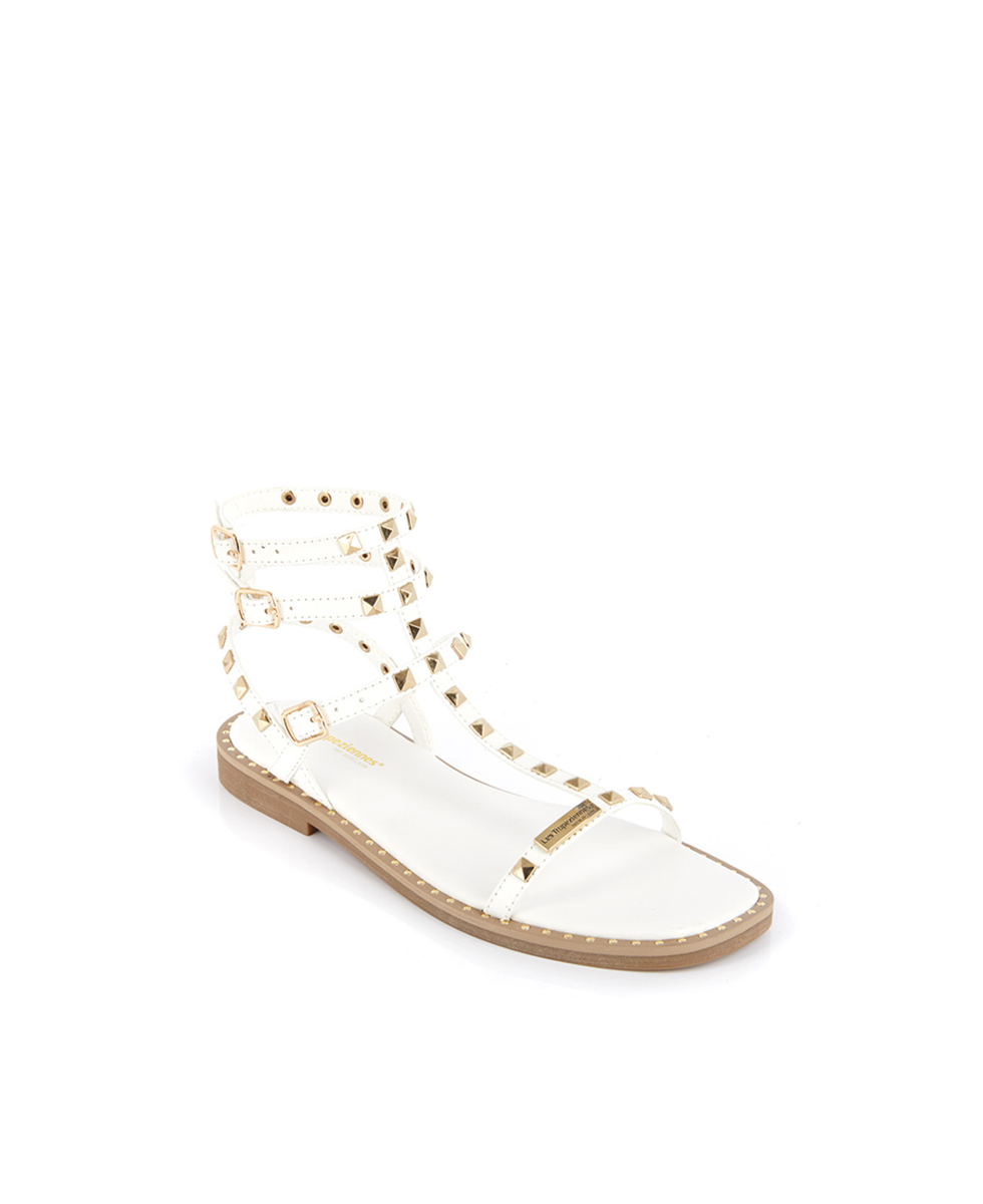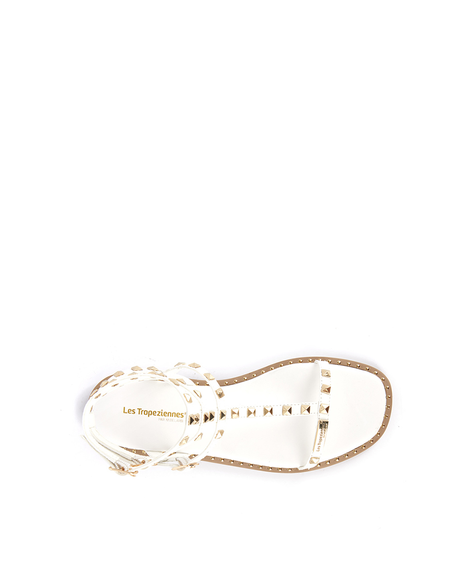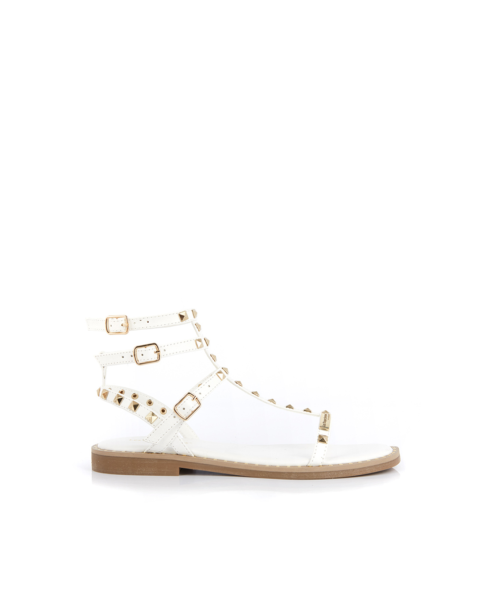 Type de produit : Sandales plates en cuir avec détails métalliques.