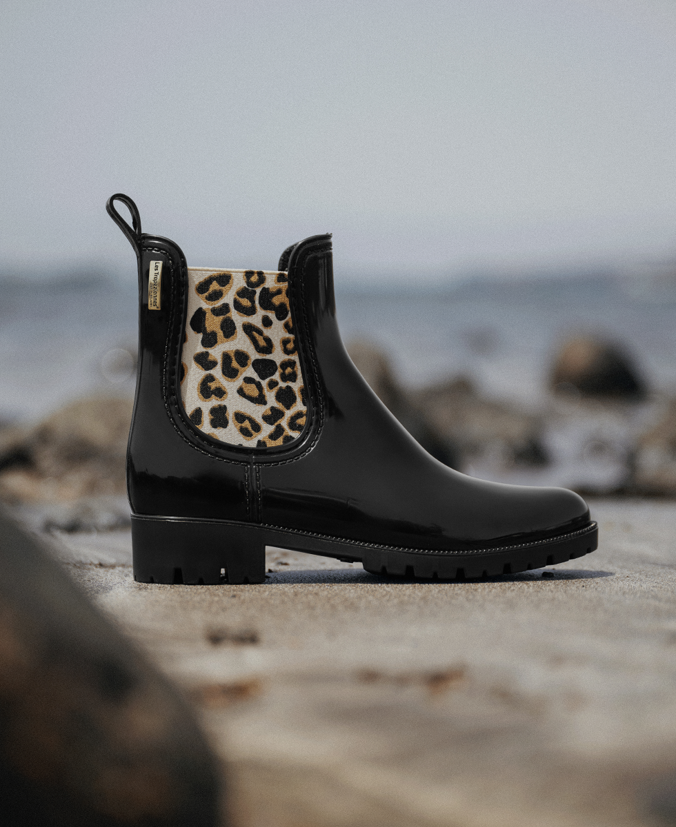 Une bottine de pluie au design chic qui garde vos pieds au sec sans compromis sur le style.