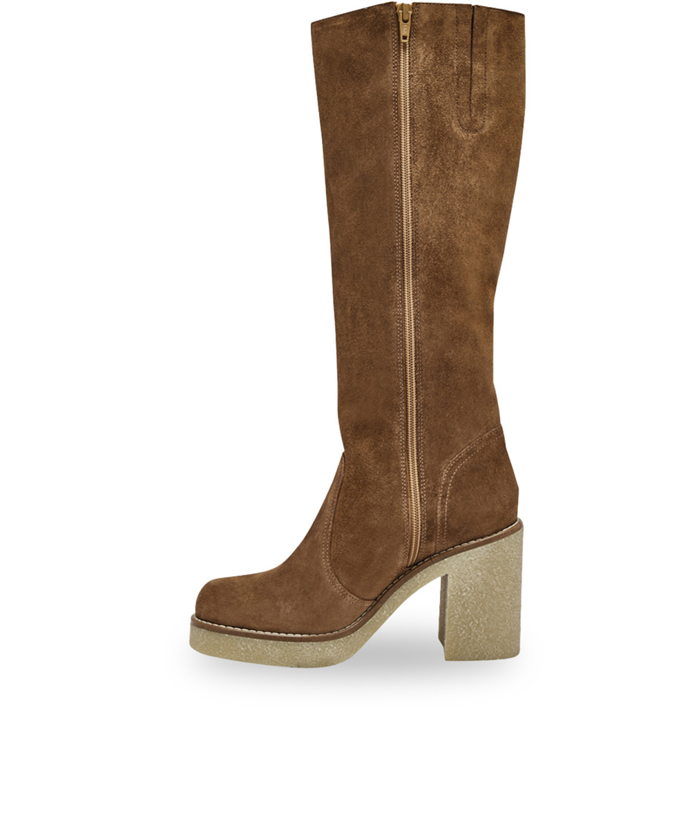 En savoir +Nous vous présentons Stephy ! Une paire de bottes en cuir velours à talon qui sublimera vos jambes.