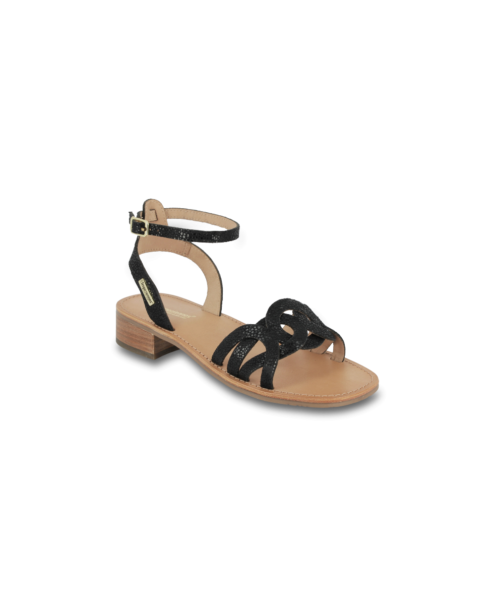 Découvrez nos sandales à talon en cuir métallisé, entrelacées de brides élégantes, alliant confort et éco-responsabilité pour un style unique.