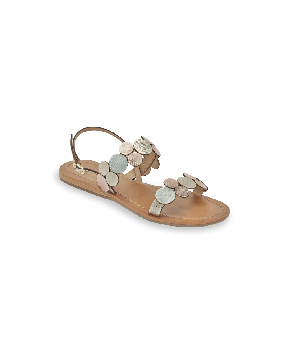 En savoir +Découvrez la sandale plate pour femme Hollydot pour adopter un style estivale avec ces deux brides portant de jolies motifs en forme de cercle rendant cette paire unique. La bride arrière se ferme par une jolie boucle élégante.