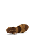 Découvrez nos élégantes sandales à talon Tihasued, avec brides croisées en veau velours et semelle crantée pour un confort sportif.