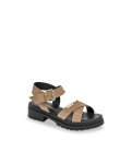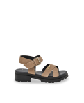 Découvrez nos élégantes sandales à talon Tihasued, avec brides croisées en veau velours et semelle crantée pour un confort sportif.