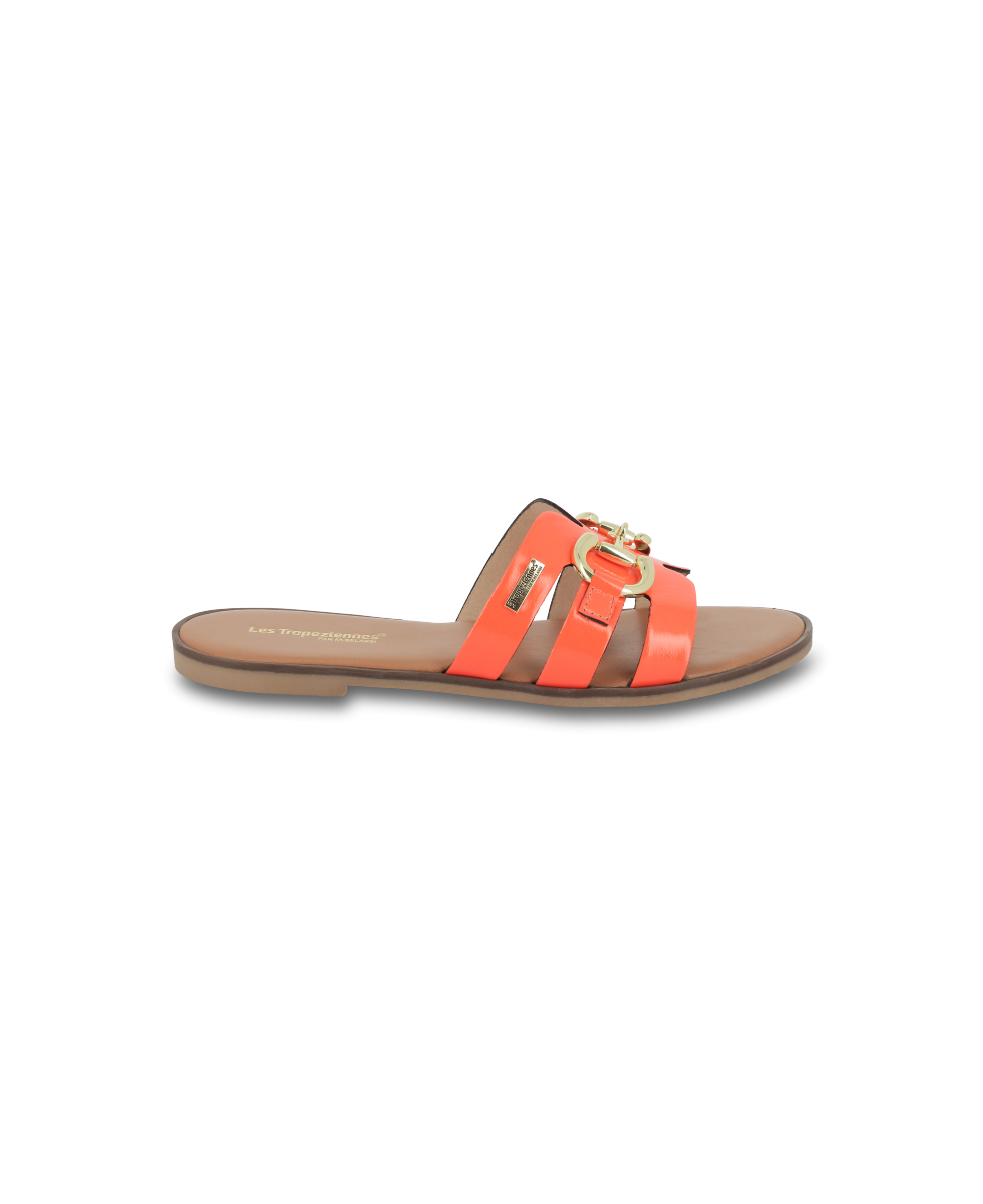 Découvrez les mules Hamia en cuir de Les Tropeziennes par M. Belarbi; l'élégance au naturel avec brides larges et détails dorés.