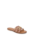 Découvrez les mules Hamia en cuir de Les Tropeziennes par M. Belarbi; l'élégance au naturel avec brides larges et détails dorés. "Taille 42 disponible uniquement en noir et tan"