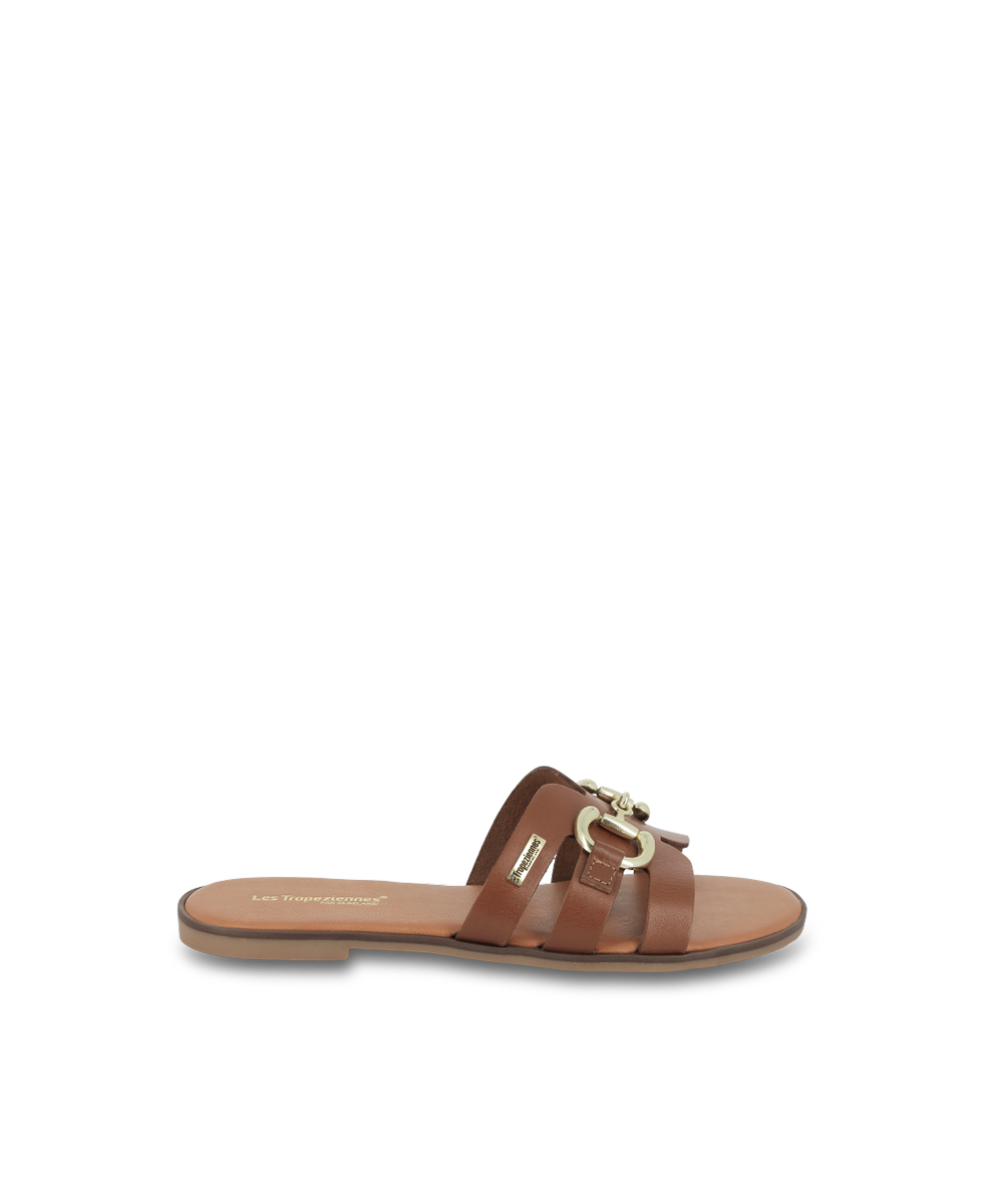 Découvrez les mules Hamia en cuir de Les Tropeziennes par M. Belarbi; l'élégance au naturel avec brides larges et détails dorés.