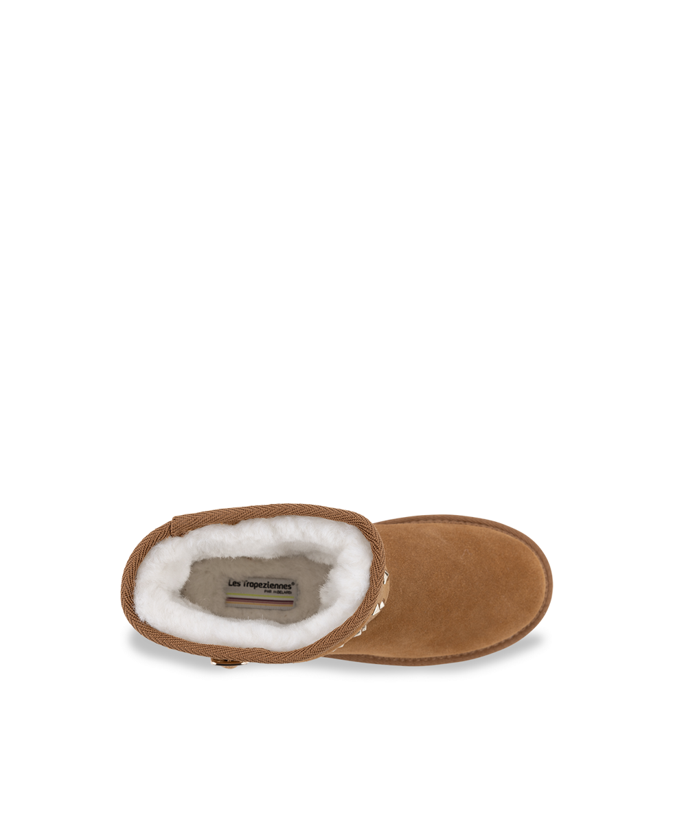 En savoir +A la recherche de confort et de style ? Notre bottine fourrée CHACHOU en cuir LWG vous apportera tout le confort dont vous aurez besoin cet hiver. En chaussons d'intérieur ou en bottines pour l'extérieur, CHACHOU sera parfaite pour l'hiver ! Avec ou sans bride ? Choisissez votre style avec la double lanière synthétique cloutée amovible. Disponible en deux coloris.