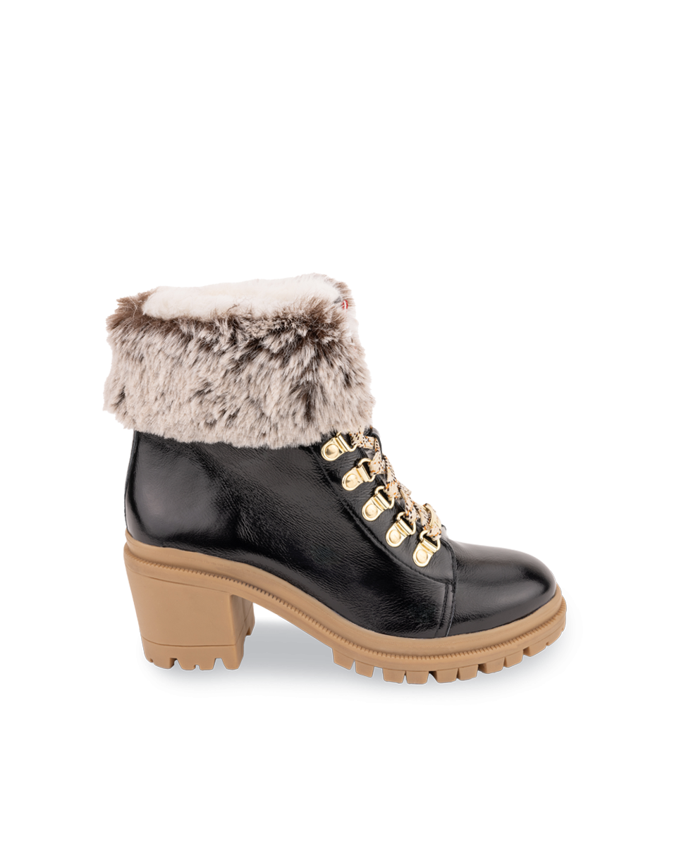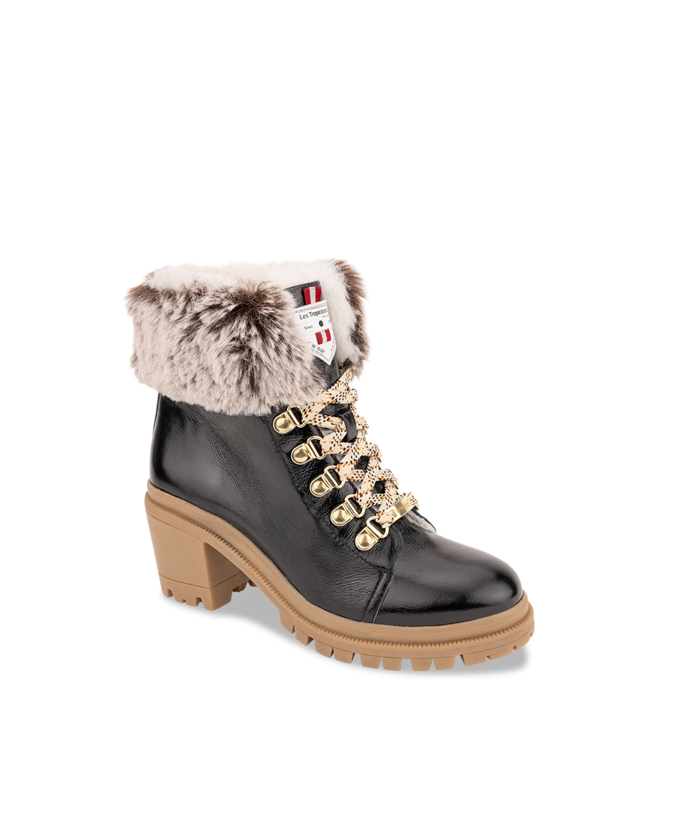 En savoir +Découvrez ROSENN, notre bottine fourrée à talons ! Blanche, noire ou dorée, choisissez le coloris qui vous plaît. Son talon de 5,5cm assure un confort optimal et son imitation fourrure intérieure offre à vos pieds tout le confort et la chaleur qu'ils méritent. Conçues à partir de cuir LWG, elles sont la paire à avoir pour l'hiver.