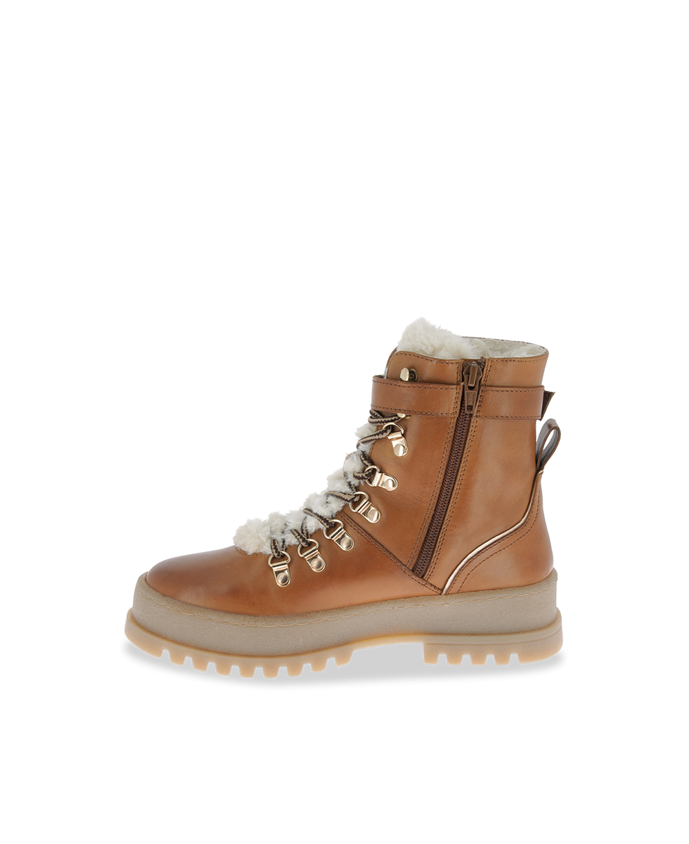 En savoir +VALERIA ! Notre nouvelle bottine fourrée plate VALERIA est là pour vous chausser au mieux durant cet hiver. Composée de cuir LWG et d'un intérieur en imitation fourrure, elle saura maintenir comme il faut votre pied, grâce à ses lacets. Disponible en trois coloris.