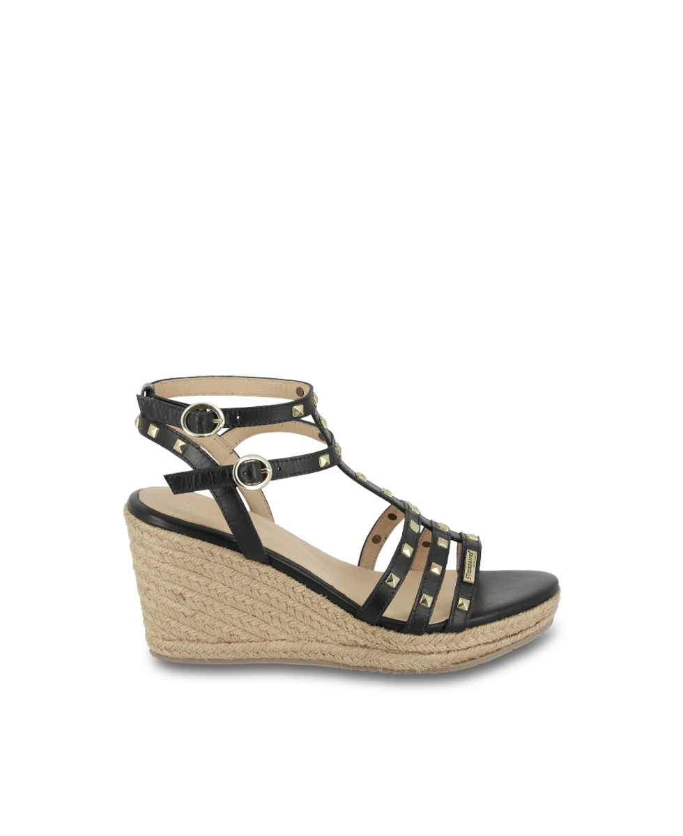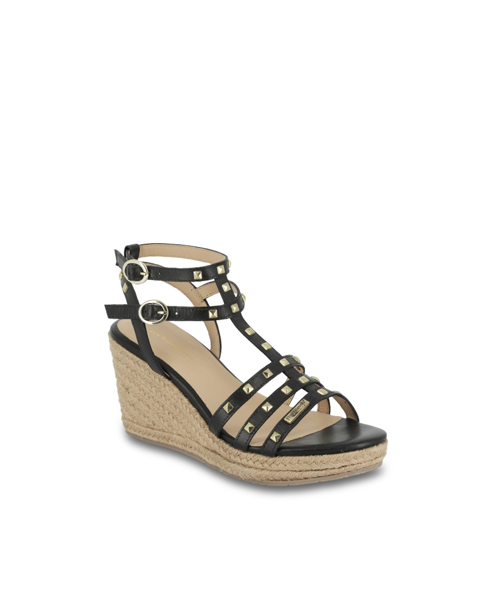 Découvrez nos sandales compensées LILI : élégance et confort, ornées de clous dorés, idéales pour sublimer vos tenues estivales avec style.