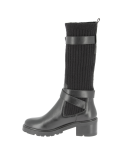 En savoir +Ces boots femme noires combinent design moderne et fonctionnalité. Leur tige en maille côtelée est rehaussée de deux sangles ajustables avec boucles métalliques, offrant un maintien optimal et une touche tendance. Le talon épais et la semelle crantée assurent une excellente stabilité, idéale pour les journées actives.